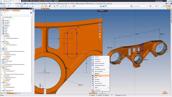 - Componentes inteligentes listos para fabricación que ejecutan sus propias operaciones y se integran directamente con TopSolid'Cam
