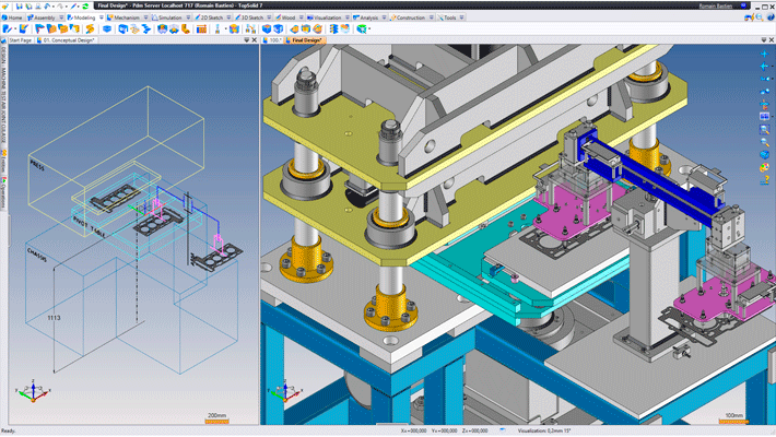 TopSolid'Design acelera el desarrollo de ensambles complejos con herramientas potentes, intuitivas y totalmente integradas que optimizan el trabajo del ingeniero desde la ide inicial hasta el modelo final.